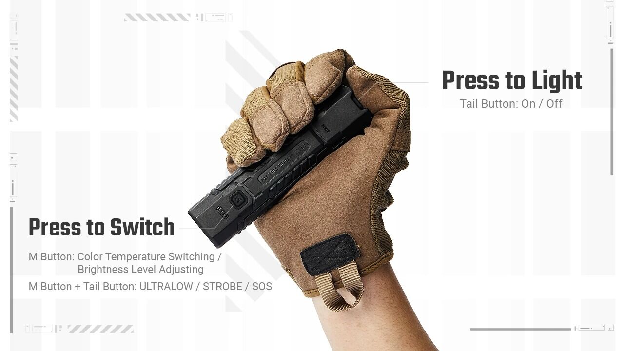 Built for dependable everyday use, EDC07 features a durable body sealed against dust and rain with an IP67 rating, making it tough enough to handle daily bumps and drops. Intuitive dual-button controls provide fast access to brightness levels, momentary illumination, and emergency modes, keeping operation simple and instinctive. With long runtimes, an ultralow mode lasting up to 360 hours, and convenient USB-C charging, EDC07 delivers a balanced blend of comfort, performance, and reliability—making it an easy choice for everyday carry.