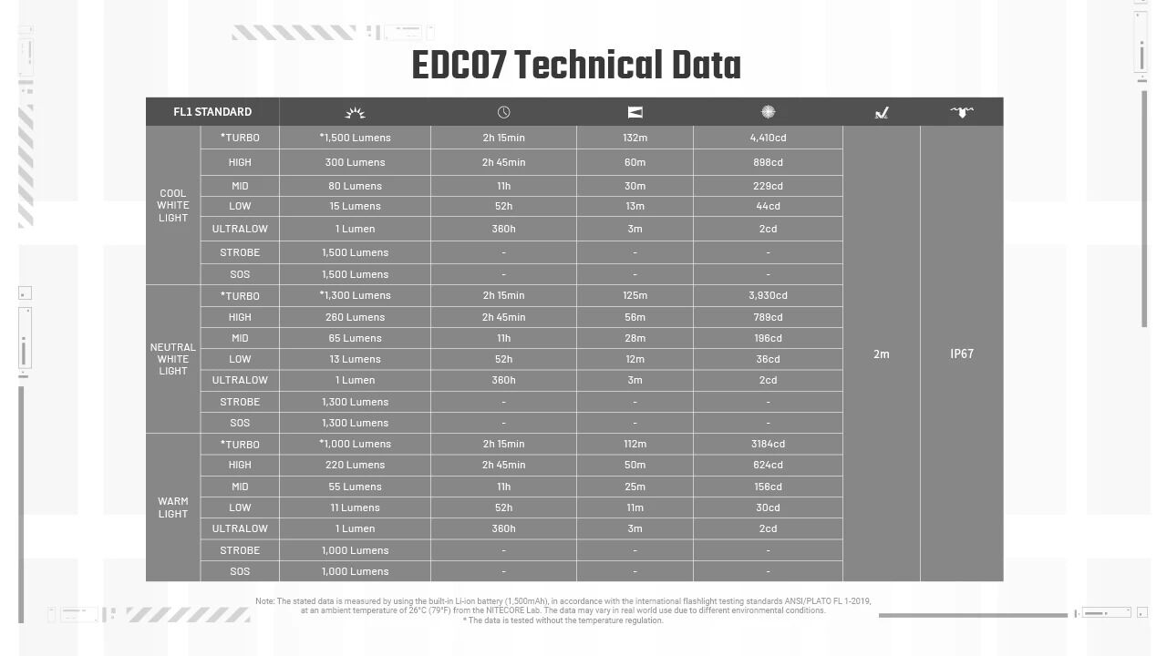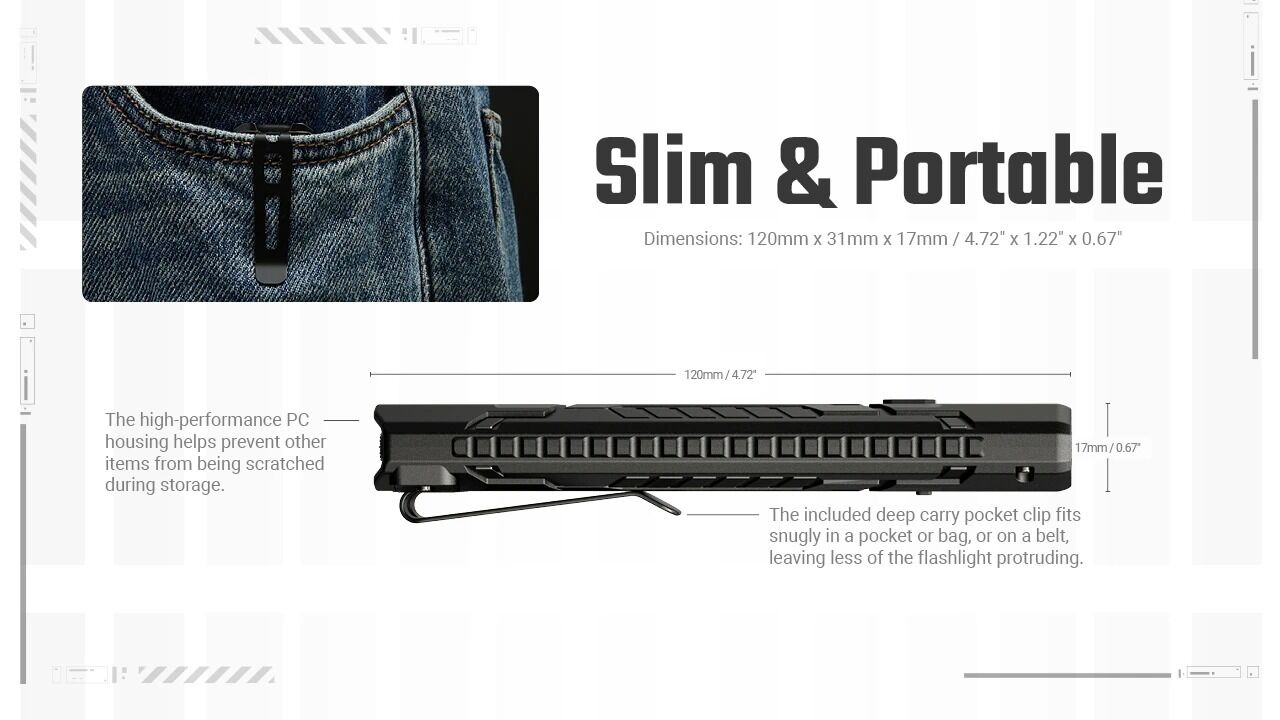 The Nitecore EDC07 is a flat, lightweight everyday carry flashlight designed to fit naturally into daily life. Weighing just 2.47 oz, its slim profile rides comfortably in the pocket while still delivering up to 1,500 lumens of practical, usable light. Compact without feeling fragile, EDC07 is easy to carry all day and ready whenever you need it.