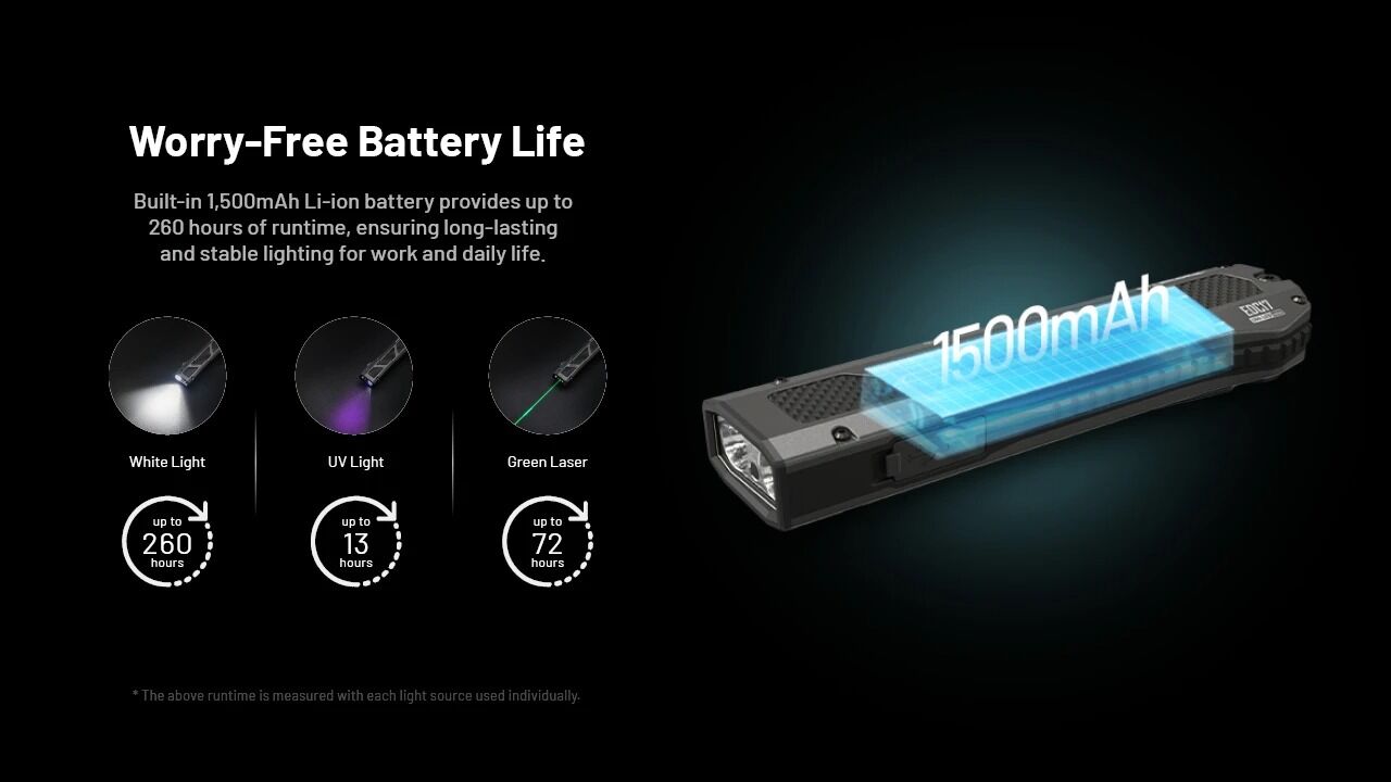 PROFESSIONAL-GRADE UV AUTHENTICATION - At 1,350mW peak output, this reveals security features on currency, IDs, passports, and credit cards clearly even in ambient light. Three power levels let you match intensity to the task: 220mW for basic checks with 13 hours runtime, 650mW for standard authentication with 5 hours runtime, or 1,350mW for maximum output when you need it with 2 hours runtime.