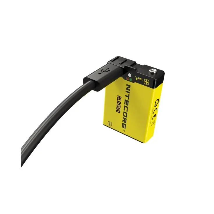 The Nitecore HLB1500 Li-ion Battery pack is 3.85V and can be fully recharged within 1 hour and 30 minutes via its USB-C port. Red and green indicator lights are built into the battery for a real-time charge status.