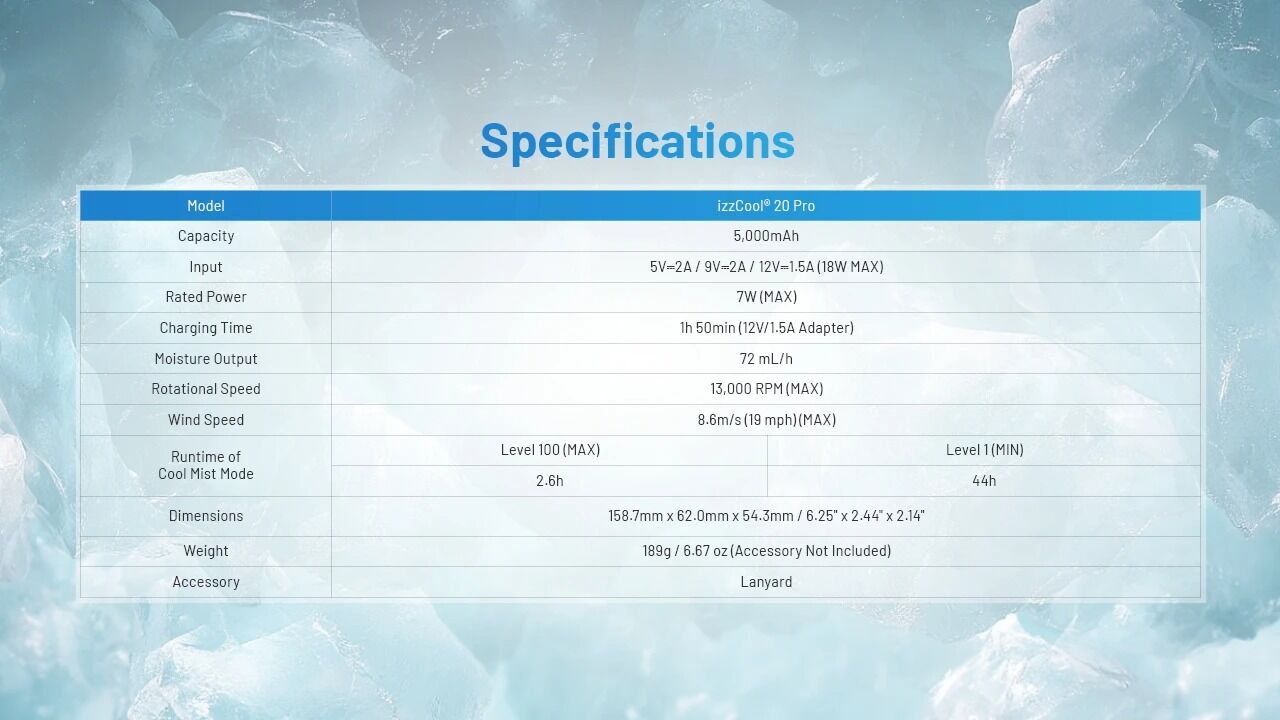 Unlike standard fans, the izzCool 20 Pro offers 100 adjustable speed levels, reaching up to 8.6m/s (19 mph). Perfect for tailoring airflow in extreme heat or breezy coastal evenings.