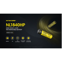 From Nitecore's latest battery generation, the NL1840HP stands out with an impressive 4000mAh capacity, making it an excellent choice for high-drain devices due to its continuous 10A discharge current. Endowed with Nitecore's hallmark safety features and quality engineering, the NL1840HP stands as a testament to the brand's reputation as a reliable source of rechargeable Li-ion batteries.