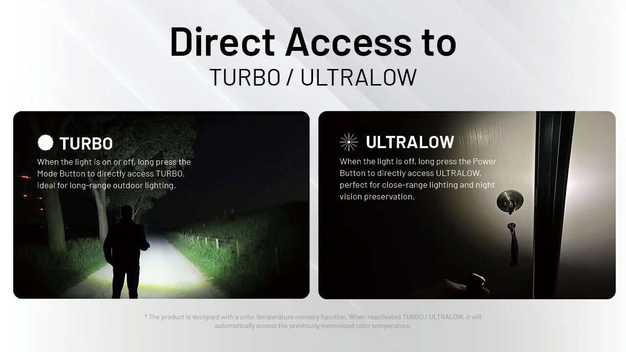 What sets the TIP3 apart is its ability to switch between three color temperatures to match different situations. Use 3000K warm light for reading or close-up tasks that are easier on the eyes, 4500K neutral white for natural everyday lighting, or 6500K cool white when you need maximum brightness outdoors. Simple two-button controls make operation easy, with quick access to Turbo and an ultra-low mode for subtle, low-glare lighting.