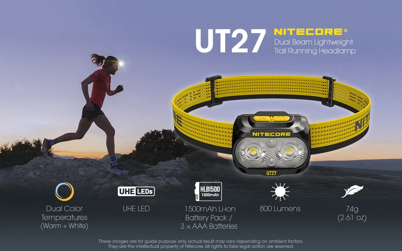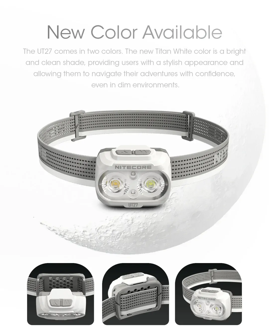 The Nitecore UT27 stands out as a bright lightweight headlamp designed for running, with insights from professional trail runners across the globe. It features both white and warm light options. The white light spans an impressive 160 meters and yields an output of 500 lumens, ideal for outdoor pursuits like trail running, hiking, and nocturnal strolls. Conversely, the warm light extends up to 136 meters with the same 500-lumen output making it excellent for penetrating challenging weather conditions like rain, snow, or fog. By combining both lights on Turbo mode, an astounding 800 lumens of brightness emerges, casting a seamlessly uniform beam that reaches 160 meters. The UT27 further offers a red light mode, switchable between a steady glow and a flashing signal, facilitating awareness of your surroundings. Effortless toggling between light options and brightness adjustments is enabled through the user-friendly dual switches.